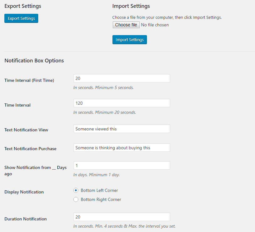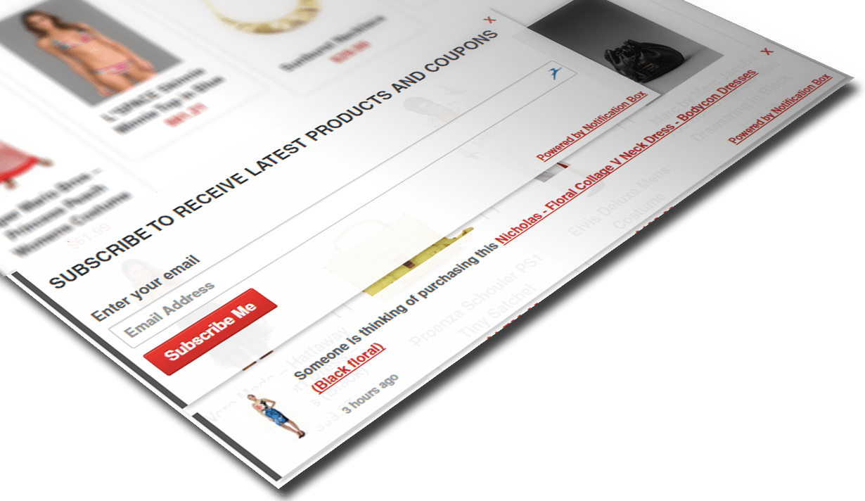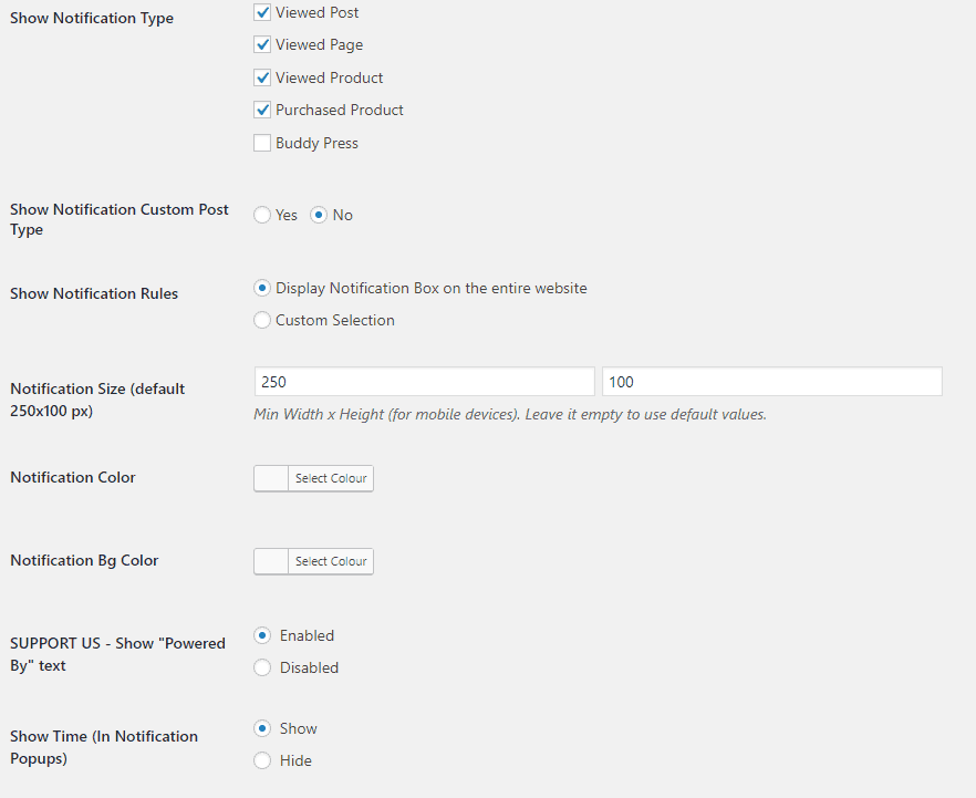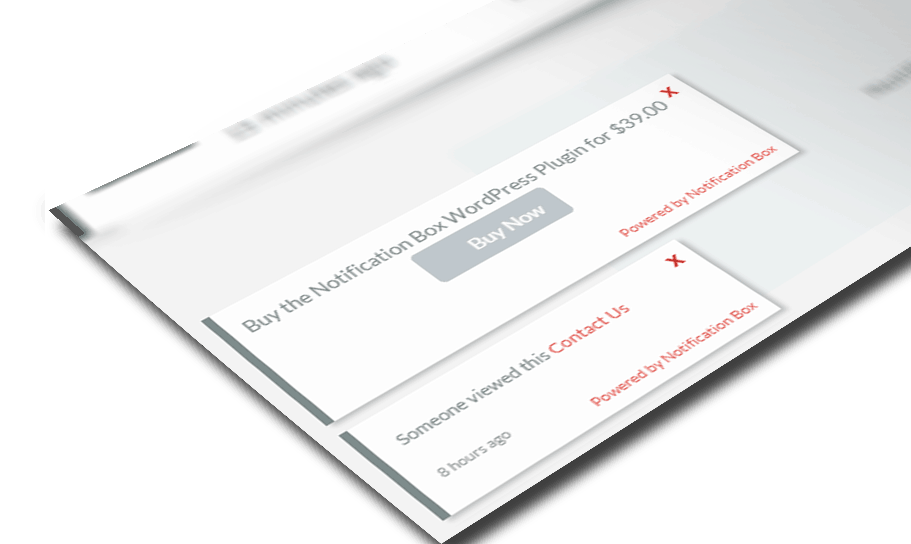- Display the following information in a Notification Box: Custom Message, Title, Thumbnail Image and how long ago the page/post,product was viewed or clicked