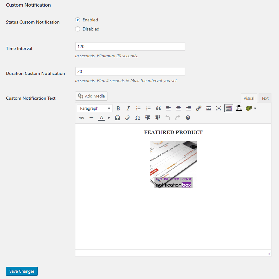 - Limitless possibilities by including shortcodes in the Custom Notifications